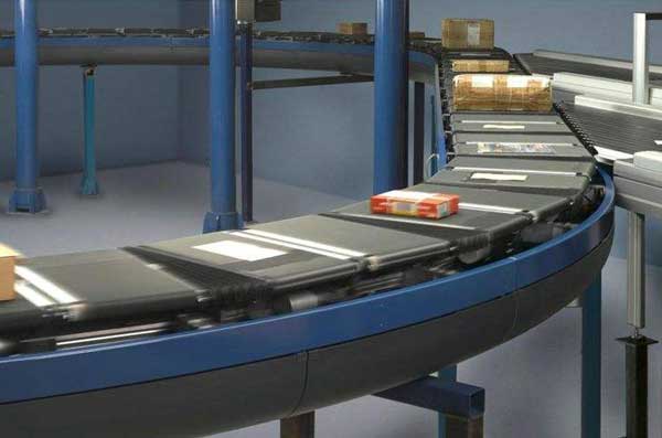 滚珠模组带分拣系统其核心部分为滚珠模组带分拣设备,模组带内嵌万向滚珠,通过底部驱动摩擦可使万向滚珠带动货物产生全方位、多角度的转向,模组带链板式结构,滚珠间距小,不会易造成卡货现象。